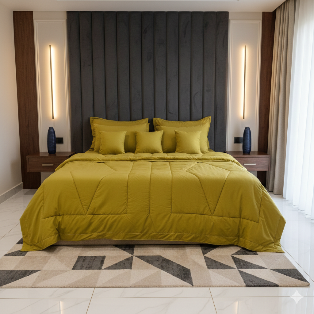 طقم لحاف مايكروفايبر صيني سادة عالي الجودة يتكون من 10 قطع متنوعة مملوئة بحشوة المايكروفايبر الناعم, تشمل لحاف وخداديات وملاءات بتصميمات وألوان جذابة, مصنوع من ألياف المايكروفايبر الفاخرة التي توفر ملمسا ناعما, مناسب لجميع المواسم ومثالي لغرف النوم العصرية