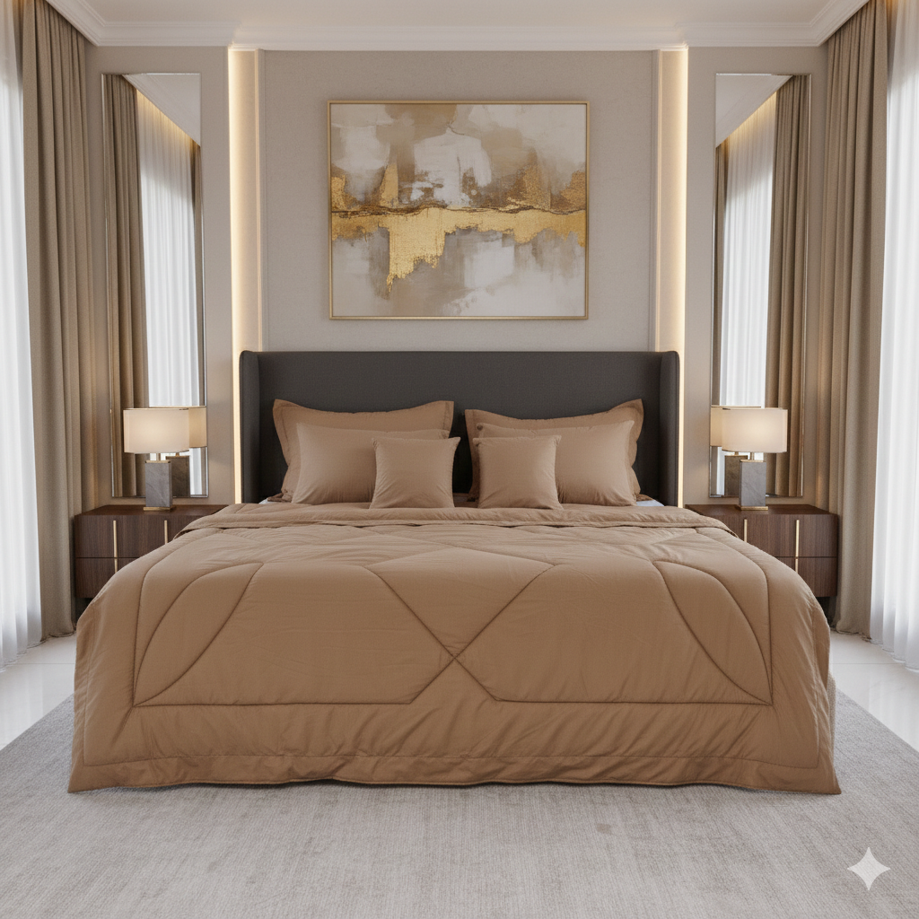 طقم لحاف مايكروفايبر صيني سادة عالي الجودة يتكون من 10 قطع متنوعة مملوئة بحشوة المايكروفايبر الناعم, تشمل لحاف وخداديات وملاءات بتصميمات وألوان جذابة, مصنوع من ألياف المايكروفايبر الفاخرة التي توفر ملمسا ناعما, مناسب لجميع المواسم ومثالي لغرف النوم العصرية
